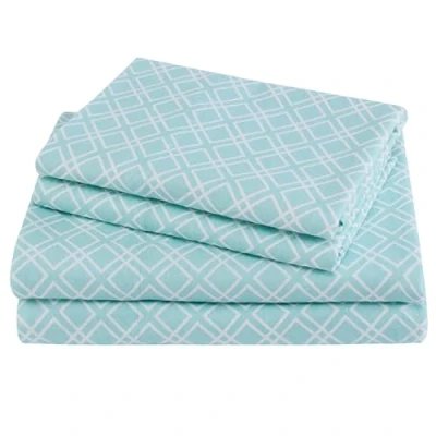 Comfort Spaces Cotton Flannel Breathable Warm Deep Pocket Sheets with Pillow Case Bedding, Queen, Aqua Geo 4 Piece