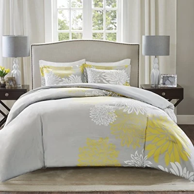 Comfort Spaces Enya Comforter Set Modern Floral Design, Fabric, Yellow, King
