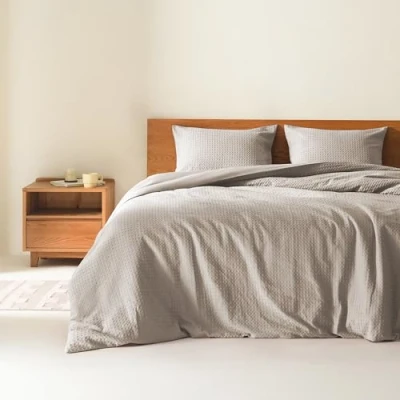 Modern Farmhouse Comforter - Comforter set for Queen size bed showcases a classic & charming farmhouse waffle weave texture, offering a soft and cozy feel that creates an inviting atmosphere, adding a touch of cottage allure to your bedroom Soft Microfiber - Cozy & soft brushed micforiber Queen bedding comforter paired with skin friendly polyester fill for added comfort. Soft waffle weave texture enhanced breathability ensuring you stay comfortably cozy throughout the night All Season Bedding - This versatile comforter is designed to keep you cozy and comfortable in any season. Lightweight & breathable to keep you cool during summer nights, yet with ample warmth to provide comfort through colder winter seasons Farmhouse Comforter Set - 1 Full/Queen Comforter: 90"W X 90"L, 2 Standard Shams: 20"W X 26"L+2"D. This bedding set is skin friendly and Oeko-Tex certified for superior comfort and wellness, free from compromising substances or chemicals Easy Care - Machine washable. Use large capacity washer and dryer for best results. Cold/delicate cycle, low/no heat dry. Comes in compressed packaging, fluff up items as needed. Use fabric steamer for wrinkles