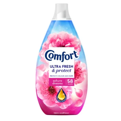 FabFindsExperience lasting freshness with every wash. Comfort Sakura Dreams blends the soft floral scent of cherry blossoms with innovative Odour Defence technology to keep clothes fresh, soft, and delicately fragrant.. Sakura Dreams fragrance inspired by Japanese cherry blossoms. Contains Odour Defence Technology for 100% long-lasting freshness. Up to 58 washes per 870ml bottle. Leaves fabrics soft, smooth, and easier to iron. Helps reduce wrinkles and static cling. Ideal for everyday laundry care – clothing, linens, towels
