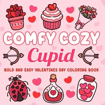 Comfy Cozy Cupid: Valentines Day Coloring Book with Bold & Easy Designs for Adults, Teens Kids: (Bold, Cute Books)