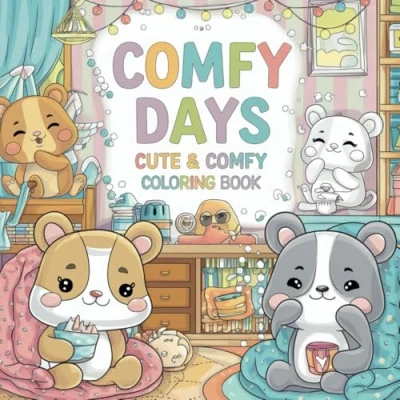 Comfy Days: Cute and Coloring Book for Adults Teens with Featuring Super Animal Characters in Cozy Hygge Moments Relaxation
