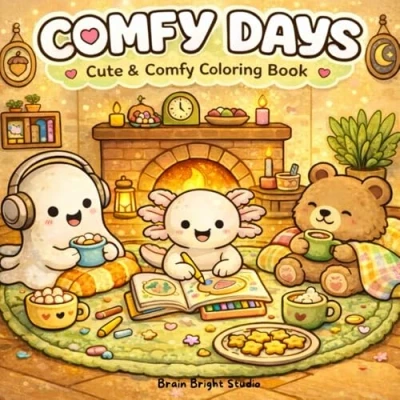Comfy Days Cute & Coloring Book: Cozy Friends Corners Cute, Kawaii, Calming Book for Adults Teens