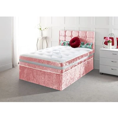 Comfy Deluxe LTD Crushed Velvet Divan Bed with Mattress Headboard and Storage Drawers (Pink, 4FT6 (Double) 0 Drawers)