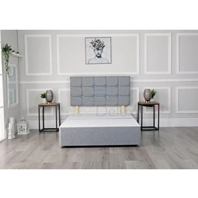 Comfy Deluxe LTD Linen Fabric Divan Bed Base with Matching Cube Headboard (No mattress will be provided) (Silver, 4FT6 4 Drawers)