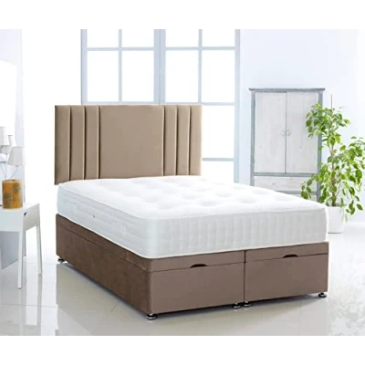 SOFT PLUSH VELVET UPHOLSTERY | The Comfy Deluxe LTD ottoman bed double is upholstered in soft-touch plush velvet, delivering a smooth, luxurious feel and a modern look. This double bed is ideal for compact bedrooms or guest rooms where style and functionality matter. MADE WITH CARE IN THE UK | Every ottoman bed base is crafted in-house in the United Kingdom to ensure consistent quality, strength, and attention to detail. Built to perform reliably for everyday use. 26-INCH SAVANNAH HEADBOARD INCLUDED | This ottoman divan bed with storage comes complete with a matching 26-inch Savannah vertical lined headboard, featuring a clean vertical panel design that adds a contemporary and elegant focal point to your bedroom. FULL OTTOMAN GAS LIFT STORAGE | Designed with a smooth gas lift mechanism, this ottoman bed double opens easily from the foot end to reveal generous built-in storage. Ideal for storing bedding, clothing, and everyday essentials while maximising floor space. SOLID DIVAN BASE FOR STRONG SUPPORT | The solid platform ottoman bed base provides a stable and supportive foundation. Built for durability, it offers secure mattress support while maintaining a sleek, modern profile.