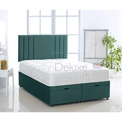 Comfy Deluxe LTD Plush Velvet Ottoman Storage Divan Bed Side Lift Open With Vertical Lined Headboard Gas Base And Only (Green, 4.0FT Small Double)