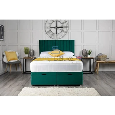 Comfy Deluxe LTD Plush Velvet Ottoman Storage Divan Bed Side Lift Open with Vertical Panel Apollo Headboard (4.0FT Small Double (121cm X 192cm), Green)