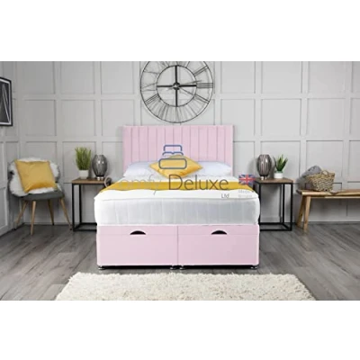 Comfy Deluxe LTD Plush Velvet Ottoman Storage Divan Bed Side Lift Open with Vertical Panel Apollo Headboard (4.0FT Small Double (121cm X 192cm), Pink)