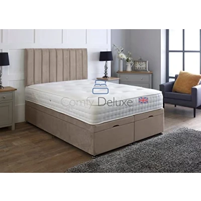 Comfy Deluxe LTD Velvetto Ottoman Gas Lift Bed With Vertical Lined Headboard Side Open Base And Only (Beige, 4.0FT Small Double)