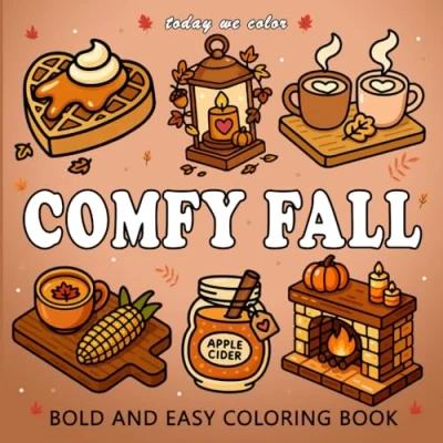 Comfy Fall: Bold and Easy Coloring Book for Adults Kids Featuring Simple Cozy Autumn Designs Relaxation (Bold & Books)