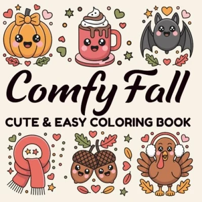 Comfy Fall Cute and Cozy Coloring Book: Bold & Easy Halloween Pages, Happy Thanksgiving for All Ages !