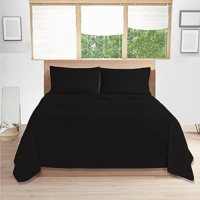 Comfy Nights Egyptian Cotton 200 Thread Count Flat Bed Sheet, Black House Wife Pillow Pair