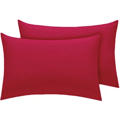 Comfy Nights Pack Of 4 PollyCotton Plain Dyed Easy Iron HouseWife Pillow Cases (Red)