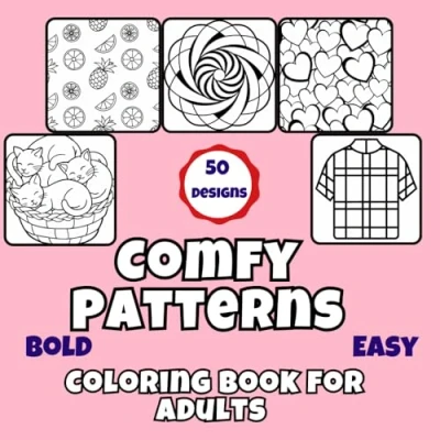 Comfy Patterns Coloring Book for Adults: 50 Relaxing, Big, Cute and Simple Designs Creative Fun, Stress Relief, Bold Easy pages