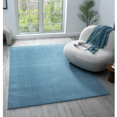 Comfy Washable Modern Living Room Rug Polyester Plain Indoor Area with Low Pile Anti Slip Felt Backing SuperSoft Carpet Bedroom Hallway, Blue, 200x280 cm