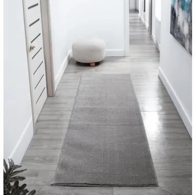 Comfy Washable Modern Living Room Rug Polyester Plain Indoor Area with Low Pile Anti Slip Felt Backing SuperSoft Carpet Bedroom Hallway, Dark Grey, 60x200 cm