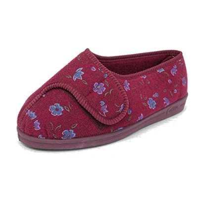 Comfylux Womens EEEE Super Wide Fit Comfort Slippers Orthopaedic Wine 5