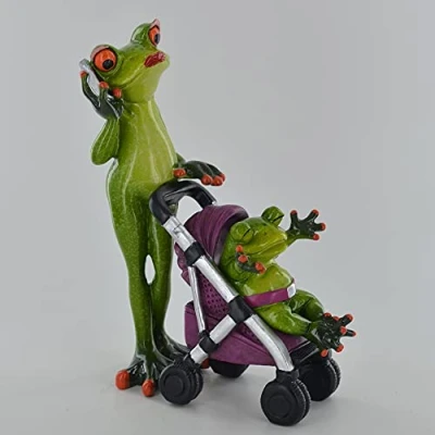 Comical Frogs Strolling Small Resin Figurine Baby Parents Novelty Home Decor Joke Present Gift H17cm