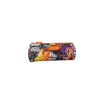 Comix Bright Tombolino Pencil Case, Black/neon Orange, Casual