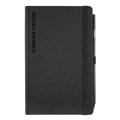 COMIX, Large 2026 Weekly 12 Month Diary, with Elastic Closure and Loop for Pencil or Pen, COMIX Included, Double Bookmark 13 x 21 cm, Tenax Black