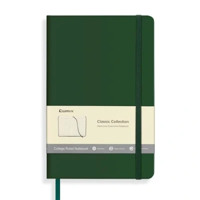 Comix Lined Journal Notebooks, 240 Pages, 5.5 x 8.3 inch, A5 Medium Hardcover Classic College Ruled Notebooks for Writing, Dark Green