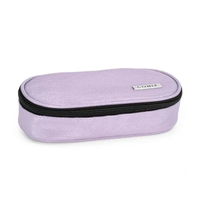 Comix Lurex Oval Pencil Case for Children and Teenagers, Ideal Storing Stationery, Practical Zip Closure, Interior with Elastic Loops on The Sides, 22 x 5 7 cm, Lilac, Casual