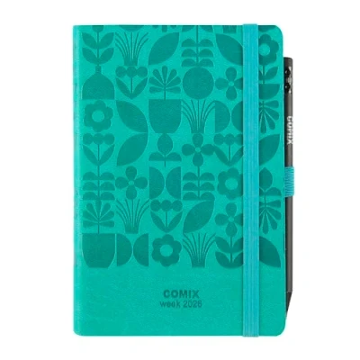 Comix Medium 2026 12 Months, Weekly Diary, with Elastic Loop for Pencil or Pen, Closure Band and Bookmark, Included, 10.7 x 15.9 cm Floral