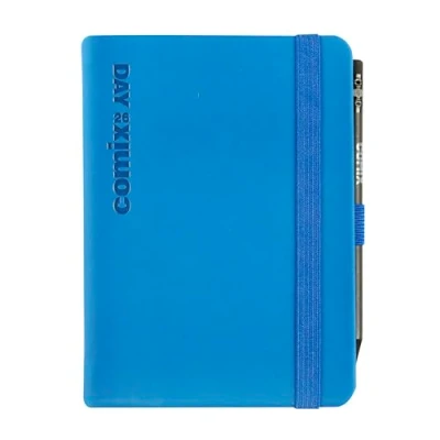 COMIX, Mignon 2026 Daily 12 Month Diary, Closure with Elastic Band and Loop for Pencil or Pen, Comix Included, Double Bookmark 9 x 12.5 cm, Blue