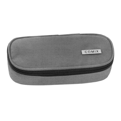 Comix Oval School Pencil Case for Children and Teenagers, Ideal Storing Stationery, with Internal Divider Elastic Loops Practical Zip Closure, 22 x 5H 7 cm, Grey, Casual