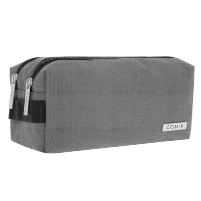 Comix School Pencil Case, 2 Zip Case for Children and Teenagers, Ideal Storing Stationery, with Practical Closure Metal Logo, 22 x 10H 10 cm, Grau, Casual