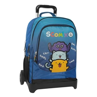 Comix SComix by Sio Trolley School Backpack, with Adjustable Handle, Detachable Trolley, Padded and Straps, 2 Main Compartments, Front Pocket, Zip Closures, 34 x 52 Hx22 cm, blue,