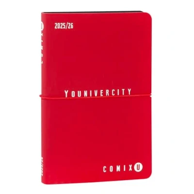 Comix U YOUNIVERCITY 2025 2026 Weekly Diary, 13 Months, Soft PU Cover, Elastic 224 Pages, University, 11.8 x 18 cm, Grey