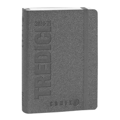 COMIX U YOURSELF 2024 2025 Mini Daily Diary, 13 Months Diary with Soft PU Cover, Elastic, Expandable Pocket and 384 Pages, Ideal for School, 4.3 x 6 inches, Grey