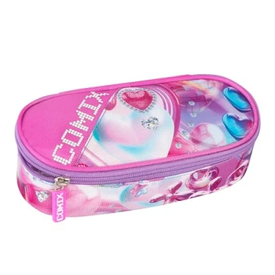 Comix Ultra Bright Oval Pencil Case Organized for Children and Teenagers, Ideal Storing Stationery, with Practical Zip Closure, Interior Elastic Loops on The Sides, 22 x 5 7 cm, Pink