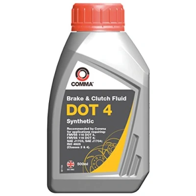 Comma DOT 4 Break Fluid Suitable for use with ABS systems Synthetic Formula Meets the performance requirements of SAE J1704 and DOT 4 specifications Comes in a 500ml bottle