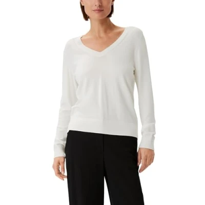 V-neck with ribbed trim Long sleeves with ribbed cuffs Hem with ribbed trim