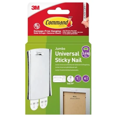 DAMAGE-FREE DECORATING: Say goodbye to holes and sticky residue on your walls; Command Picture Hangers are easy to use and help you decorate your walls without leaving any marks; Decorate, organise and celebrate damage free with Command NO TOOLS REQUIRED: Command Wall Hangers are self adhesive and easy to apply; They hang sawtooth, D ring, wire-backed and keyhole hanging frames, mirrors and canvas art damage free, without the use of nails or tools EASY CLEAN REMOVAL: Command Picture Hangers, a damage-free hanging solution can be removed without leaving any residue; Lightly hold the top of the removable adhesive strip and slowly pull straight down towards the floor to remove decor and prevent damage of walls and surfaces STRONG AND VERSATILE: 1 hook can hold one frame weighing up to 3.6kg, and measuring up to 45cm by 60cm RECOMMENDED SURFACES: Command adhesive strips hold strongly on a variety of indoor surfaces including painted walls, finished wood, painted concrete cinder blocks, laminate, glass, metal and tiles PACKAGING: Packaging for this item is made with FSC Mix certified fibre with minimum of 90% recycled content; All glues and varnishes used to produce the packaging are solvent-free; The packaging is 100% recyclable in existing household waste streams INCLUDES: 1 Hook + 4 Strips Warnings: Do not hang over beds; Do not use on wallpapers, delicate or weak surfaces; Do not hang valuable items; Failure to follow instructions may result in damage or injury Indoor use only; Recommended for use on painted walls, finished wood, painted concrete cinder blocks, laminate, glass, metal and tiles; Hang picture frames, wall art and small mirrors, Weight: 0.0220462262 pounds, Manufacturer: 3M