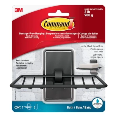 Command Bath Soap Dish, Matte Black 1 Dish + 2 Water Resistant Strips for Bathroom Damage Free Hanging