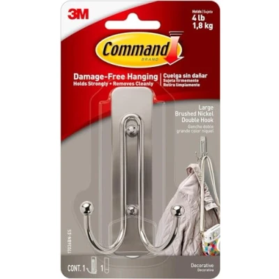 Command Brushed Nickel Double Decorative Hook for Indoor Use 1 Metal Large and Adhesive Strip Hang Jackets, Purses, Handbags, Hats, Scarves, Dog leads Organise Damage Free
