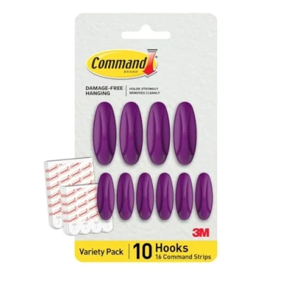 LIMITED EDITION PACK: Featuring our Candied Plum color, this Limited Edition pack includes 4 large designer hooks, 8 large indoor strips, 6 medium designer hooks and 8 medium indoor strips LOVE YOUR SPACE: Decorate freely with vibrantly colored, Limited Edition Command Designer Hooks; Get them while you can, and make your space feel good down to the damage-free details DECORATE DAMAGE-FREE: Don’t worry about holes, marks, or sticky residue on your walls and doors; Command Hooks are all about damage-free installation, clean removal, and being the ultimate dorm/apartment decoration hack NO TOOLS REQUIRED: Holds 1.3 kg, great for hanging bags, mugs and hats, allowing you to decorate freely STRONG AND VERSATILE: Command indoor hooks hold strongly on a variety of surfaces including painted walls, painted cinderblock, metal, painted concrete, finished wood, tile, and glass, Weight: 0.28599907862474 pounds, Manufacturer: 3M