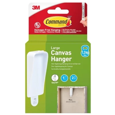 The Command™ Large Canvas Hanger is the perfect solution for displaying your favourite canvas prints and deep recessed picture frames. Designed to accommodate canvases with a maximum size of 45 cm x 60 cm and a weight up to 1.3 kg, this versatile hanger is ideal for a variety of smooth surfaces, whether they are painted walls, tiles, metal, or wood.