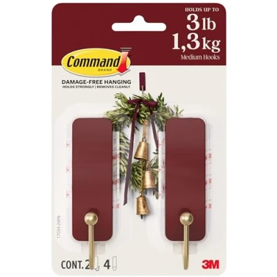 LIMITED EDITION PACK: Limited Edition pack includes 2 Medium Red Hooks with 4 strips, in our Mulled Wine colour GET INSPIRED: Express yourself with the unique Red colour of these Limited Edition Command Hooks. Get them while you can and make your space feel good all the way down to the damage-free details DECORATE WITHOUT DAMAGE: Don’t worry about holes, marks, or sticky residue on your walls and doors; Command adhesive hooks are all about damage-free installation, clean removal, and being the ultimate decoration hack NO TOOLS REQUIRED: Hang wreaths, decorations, and accessories with the Medium hooks all without tools STRONG AND VERSATILE: Command Medium Hooks can hold 1.3kg of décor on a variety of surfaces including painted walls, metal, finished wood, tile, and glass, Weight: 0.09399849464894 pounds, Manufacturer: 3M