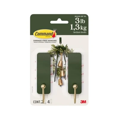 LIMITED EDITION PACK: Limited Edition pack includes 4 Medium Green Hooks with 6 strips, in our Rosemary colour GET INSPIRED: Express yourself with the unique Green colour of these Limited Edition Command Hooks. Get them while you can and make your space feel good all the way down to the damage-free details DECORATE WITHOUT DAMAGE: Don’t worry about holes, marks, or sticky residue on your walls and doors; Command adhesive hooks are all about damage-free installation, clean removal, and being the ultimate decoration hack NO TOOLS REQUIRED: Hang wreaths, decorations, and accessories with the Medium hooks all without tools STRONG AND VERSATILE: Command Medium Hooks can hold 1.3kg of décor on a variety of surfaces including painted walls, metal, finished wood, tile, and glass, Weight: 0.09299980060208 Pounds, Manufacturer: 3M