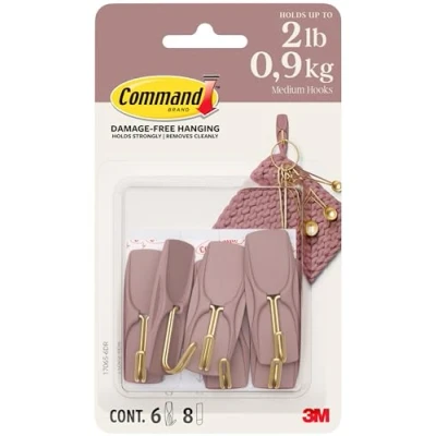 LIMITED EDITION PACK: Limited Edition pack includes 6 Medium Pink Wire Hooks with 8 strips, in our Dusty Rose colour GET INSPIRED: Express yourself with the unique Pink colour of these Limited Edition Command Hooks. Get them while you can and make your space feel good all the way down to the damage-free details DECORATE WITHOUT DAMAGE: Don’t worry about holes, marks, or sticky residue on your walls and doors; Command adhesive hooks are all about damage-free installation, clean removal, and being the ultimate decoration hack NO TOOLS REQUIRED: Hang gloves, decorations, and accessories with the Medium Wire hooks all without tools STRONG AND VERSATILE: Command Medium Wire Hooks can hold 900g of décor on a variety of surfaces including painted walls, metal, finished wood, tile, and glass, Weight: 0.08399832644462 Pounds, Manufacturer: 3M