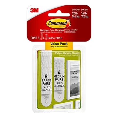 Command Picture Hanging Strips Removable for Large Frames Value Pack 4 Pairs of Medium (8 Strips), 8 (16 Strips) Damage Free