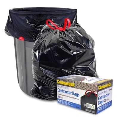 Commander 42 Gallon 2 MIL Black Heavy Duty Trash Bags 34" x 38" Pack of 28 For Home, Kitchen, Lawn, Outdoor, Construction, & Contractor