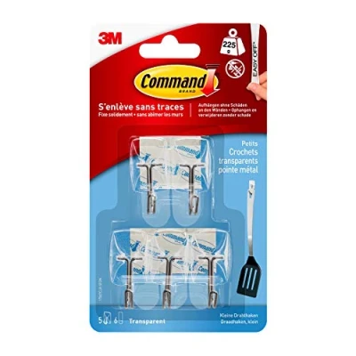 Fixes without damaging walls, holds firmly and removes cleanly without leaving any residue Easy to apply, no tools, no nails or screws required. The tabs can be removed cleanly without leaving marks, holes, marks or glue residue. Discreet, the transparent tabs and hooks blend perfectly into your decor. Suitable for most smooth surfaces, including painted walls, tiles, metal and wood Maximum weight supported : 225 g, Weight: 0.0440924524 pounds, Manufacturer: 3M