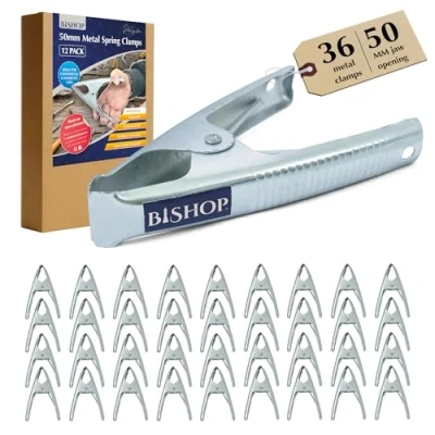 Commercial Grade Metal Spring Clamps for Woodwork Rust Proof Market Stall Tarp Clips 50mm Jaw Capacity All Steel Construction 160mm Length Triple Coil (Qty: 36)