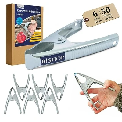 The original and best Bishop Market Stall Clips - a versatile multipurpose bulletproof tool for use for commercial and domestic applications, indoor or outdoor. A truly vital addition to any toolbox. High-strength, versatile and dependable woodworking clamps with a jaw capacity of 50mm and an overall length of 160mm. Our spring clamps are available in a range of pack sizes. These aren't just Clamps For Woodwork though! From woodwork to welding, camping to caravaning, gluing, grinding, clamping and crafting! There is no limit to what our metal spring clamps can be used for! Our Spring Clips are an all-steel construction with a heavy-duty riveted assembly, triple coil spring and silver zinc plate finish to protect from rust. Don’t leave it to chance, use a Bishop clamp. Bishop clips are the go-to Tarpaulin Clamps for market traders; tried, tested and trusted over many years for holding tarps tight and keeping things dry during our wonderfully inclement weather!, Weight: 1.873929227 pounds, Manufacturer: TraderSuppliesOutlet Storefront